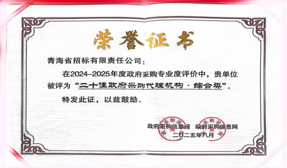 近年來,在政府采購領域高質量發(fā)展的浪潮中,青海省招標有限責任公司始終以“專業(yè)鑄魂、服務立企”為核心宗旨,進一步深耕政府采購代理服務賽道,憑借規(guī)范的操作流程、卓越的專業(yè)能力與深厚的行業(yè)積淀,逐步成長為區(qū)域政府采購服務領域的標桿型企業(yè)。近期,經青海省財政廳推薦,公司積極參與全國“2024-2025年度政府采購代理機構專業(yè)度評價”活動。經過專業(yè)評審,憑借雄厚的專業(yè)實力、專業(yè)的服務口碑,再一次從全國招標采購領域的專業(yè)精英中脫穎而出,榮獲全國(2024-2025年度)“二十佳政府采購代理機構·綜合類”榮譽稱號。
