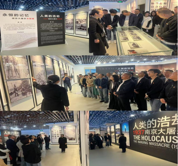 隨后,黨員們來(lái)到“永恒的記憶—南京大屠殺文獻(xiàn)展”展區(qū)。這里匯集了從日本、美國(guó)、英國(guó)、德國(guó)等多個(gè)國(guó)家和地區(qū)收集的近300件珍貴資料,既有受害方記錄苦難的檔案、加害方留下的罪證,也有第三方客觀見證的文獻(xiàn),同時(shí)還展出了南京大屠殺史研究著作、普及讀物、論文集、智庫(kù)研究報(bào)告、國(guó)家公祭主題出版物,以及多部史料和著作的對(duì)外翻譯成果。這些跨越國(guó)界的文獻(xiàn)資料,以鐵一般的事實(shí),無(wú)可辯駁地印證了南京大屠殺的歷史真相,讓“歷史說(shuō)話,史實(shí)發(fā)言”的理念得到生動(dòng)詮釋。黨員們認(rèn)真聆聽工作人員講解,從不同視角重溫歷史,深刻認(rèn)識(shí)到銘記歷史并非延續(xù)仇恨,而是為了從歷史中汲取智慧,守護(hù)來(lái)之不易的和平。